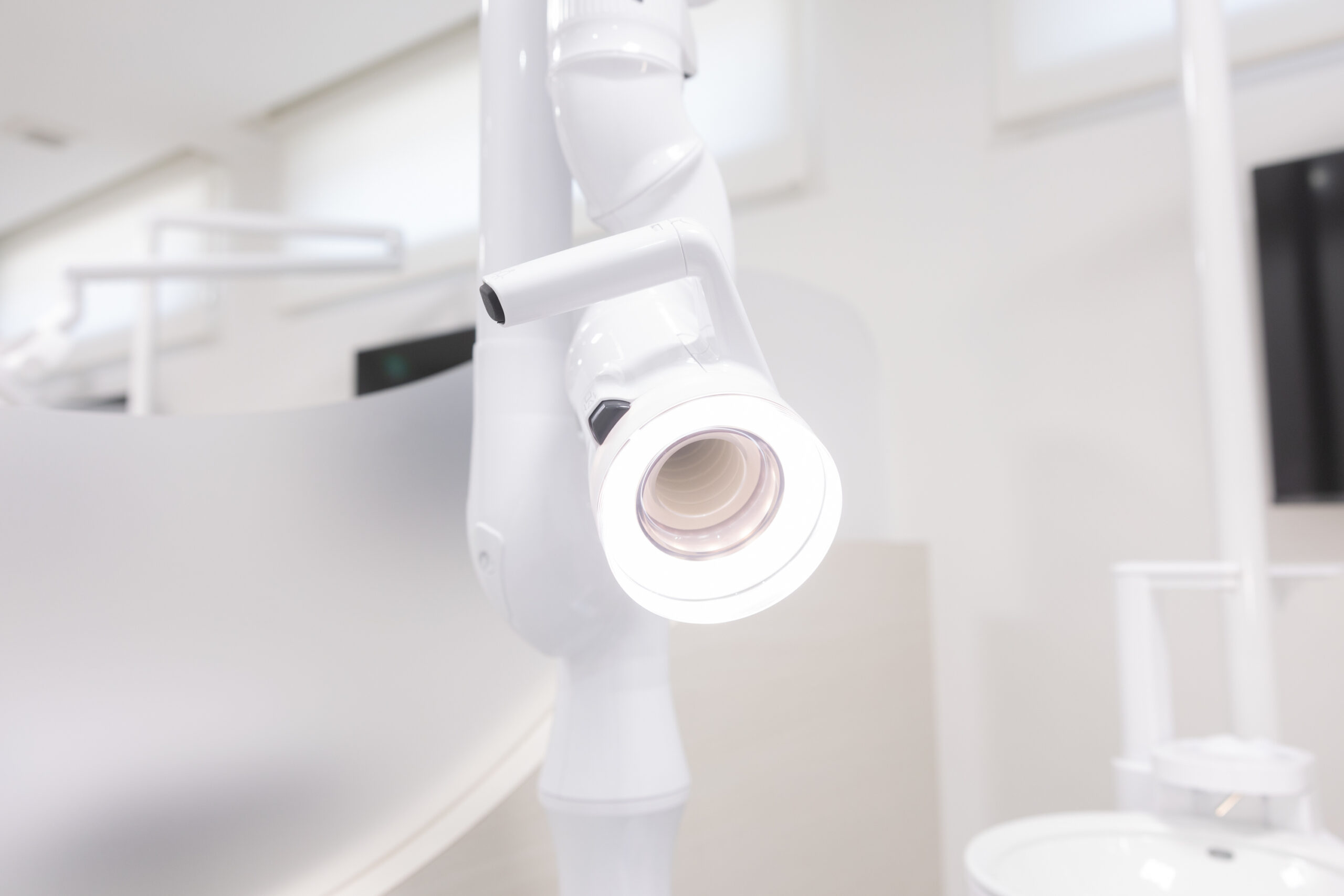 口腔外バキュームは、治療中に発生する飛沫や粉塵をお口の外で吸引する装置です。