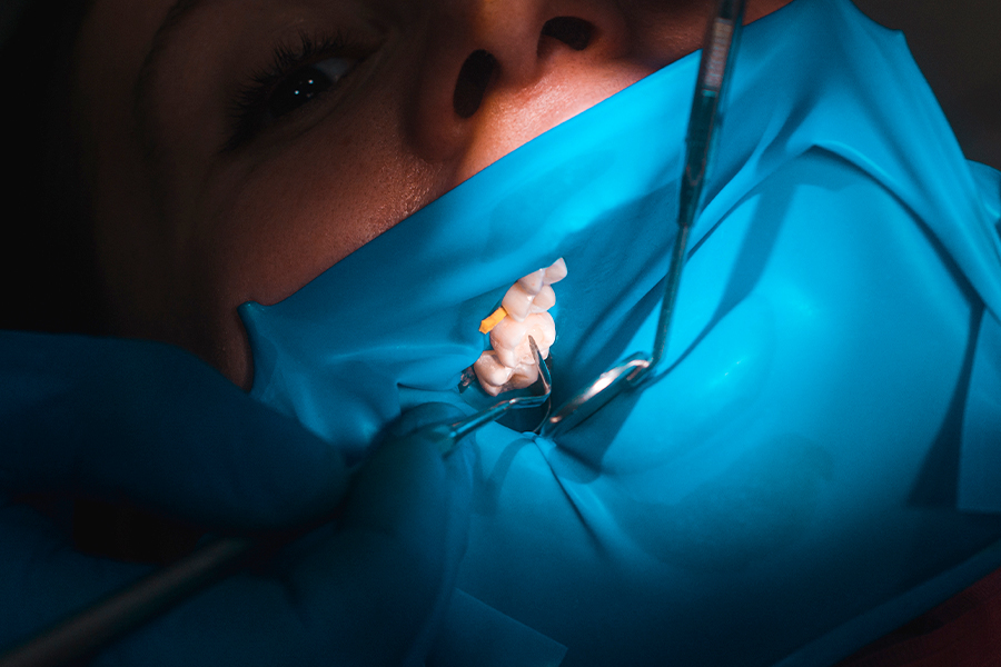 ゴム製のシートを用いて治療する歯だけを露出させるマスクのことです。その歯だけ隔離することで、唾液の侵入を防いでくれます。
